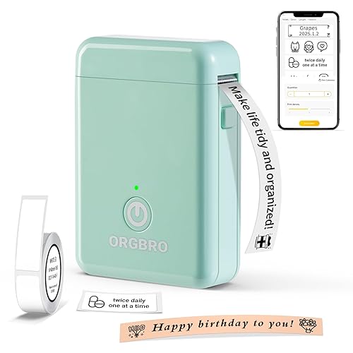 ORGBRO X1 Etiqueteuse avec Étiquettes Bluetooth Imprimante Etiquette Autocollante Thermique pour Maison, Bureau, École, Organisation, Cuisine Personnalisées, Compatible avec iOS et Android, Verte